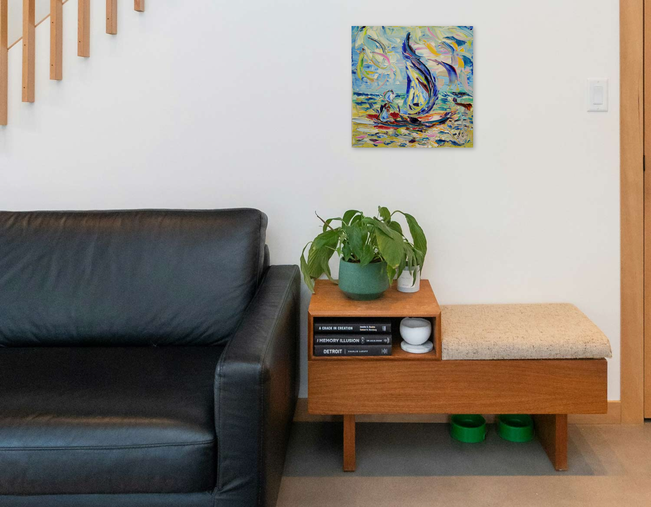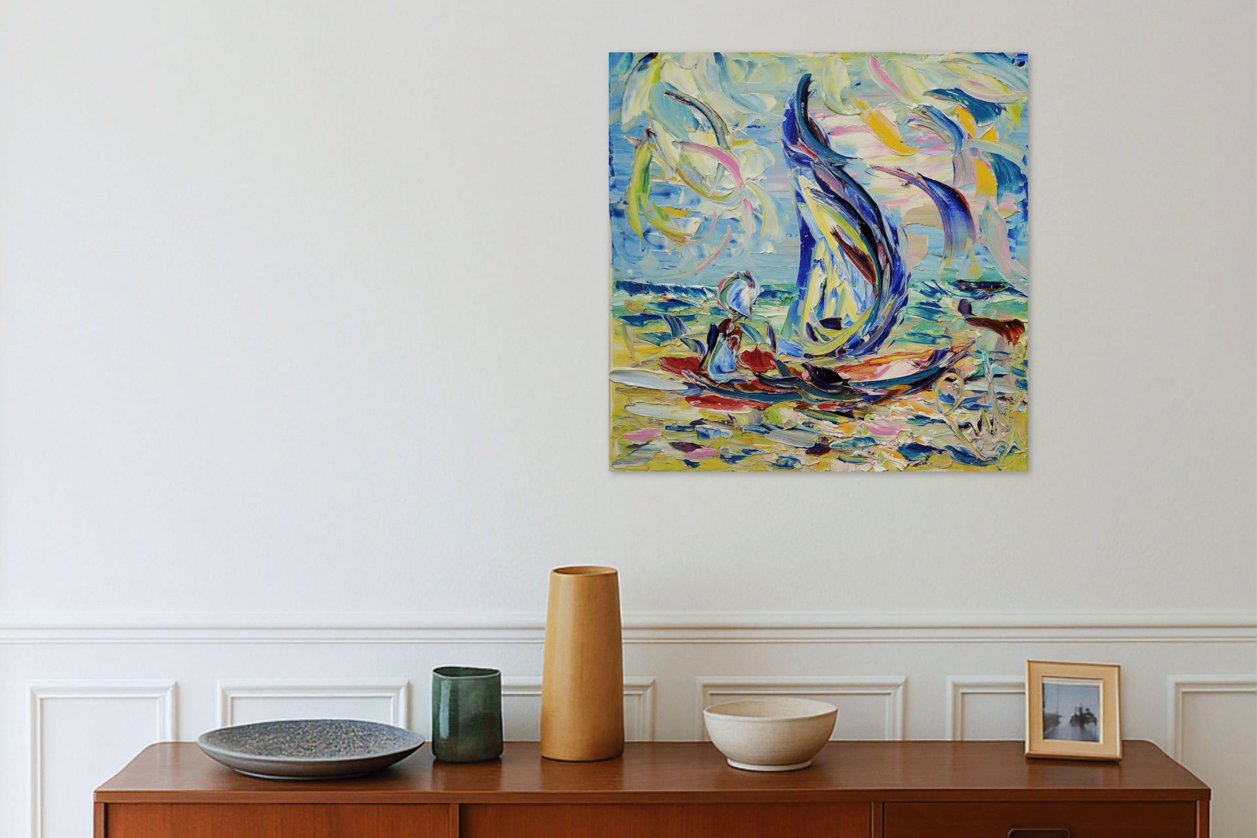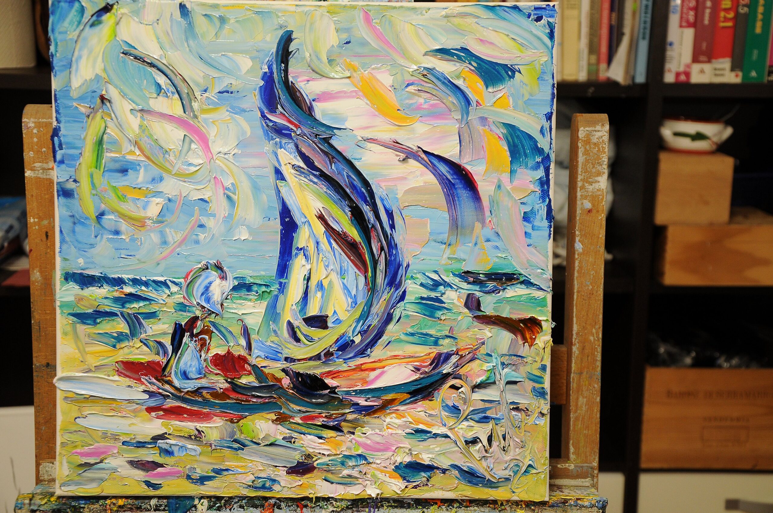 The artwork (Piccola Vela by Antonino Puliafico) is available for pickup at BelArt Gallery in Brussels, Belgium, or it can be delivered to the address of your choice within 2 to 3 weeks after your order is confirmed. The artwork is insured during transportation, so there’s no risk. Origin: Belgium.