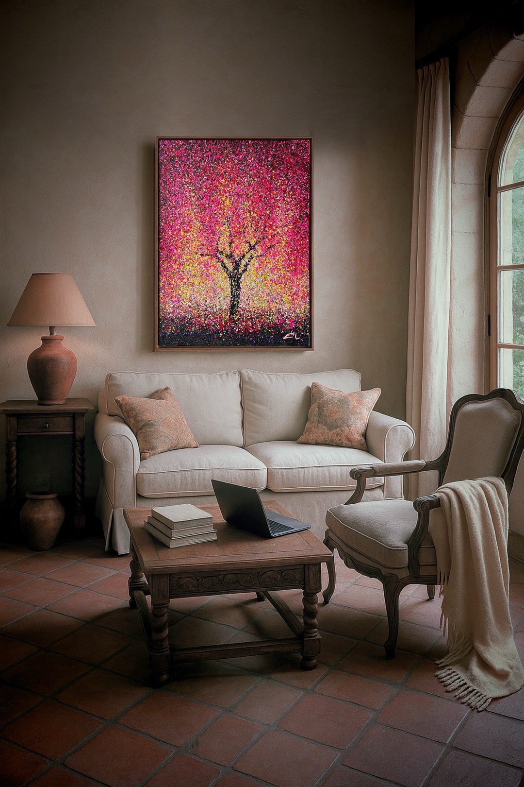 The painting is framed in a modern, gallery-style frame that perfectly complements both classic and contemporary interiors. Its clean lines and elegant design enhance the artwork while maintaining a refined, timeless aesthetic.