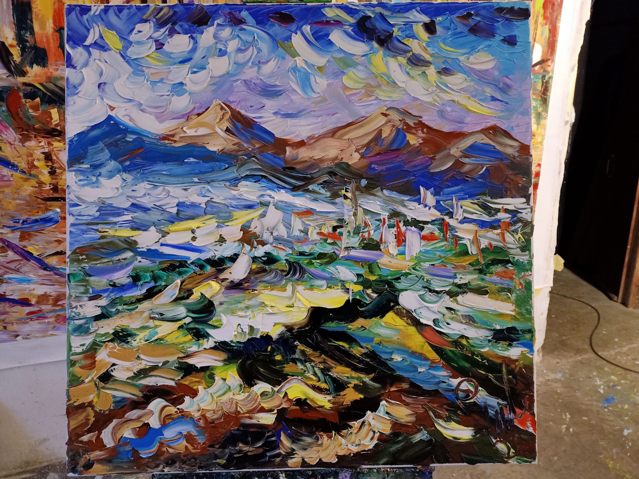 “Prati Colorati,” my 2022 oil on canvas masterpiece, measuring 80x80cm, is a vivid tapestry of nature’s abundance. In this piece, I explore the effervescent beauty of colorful meadows, portraying the richness of life and the harmonious coexistence of various plant species.