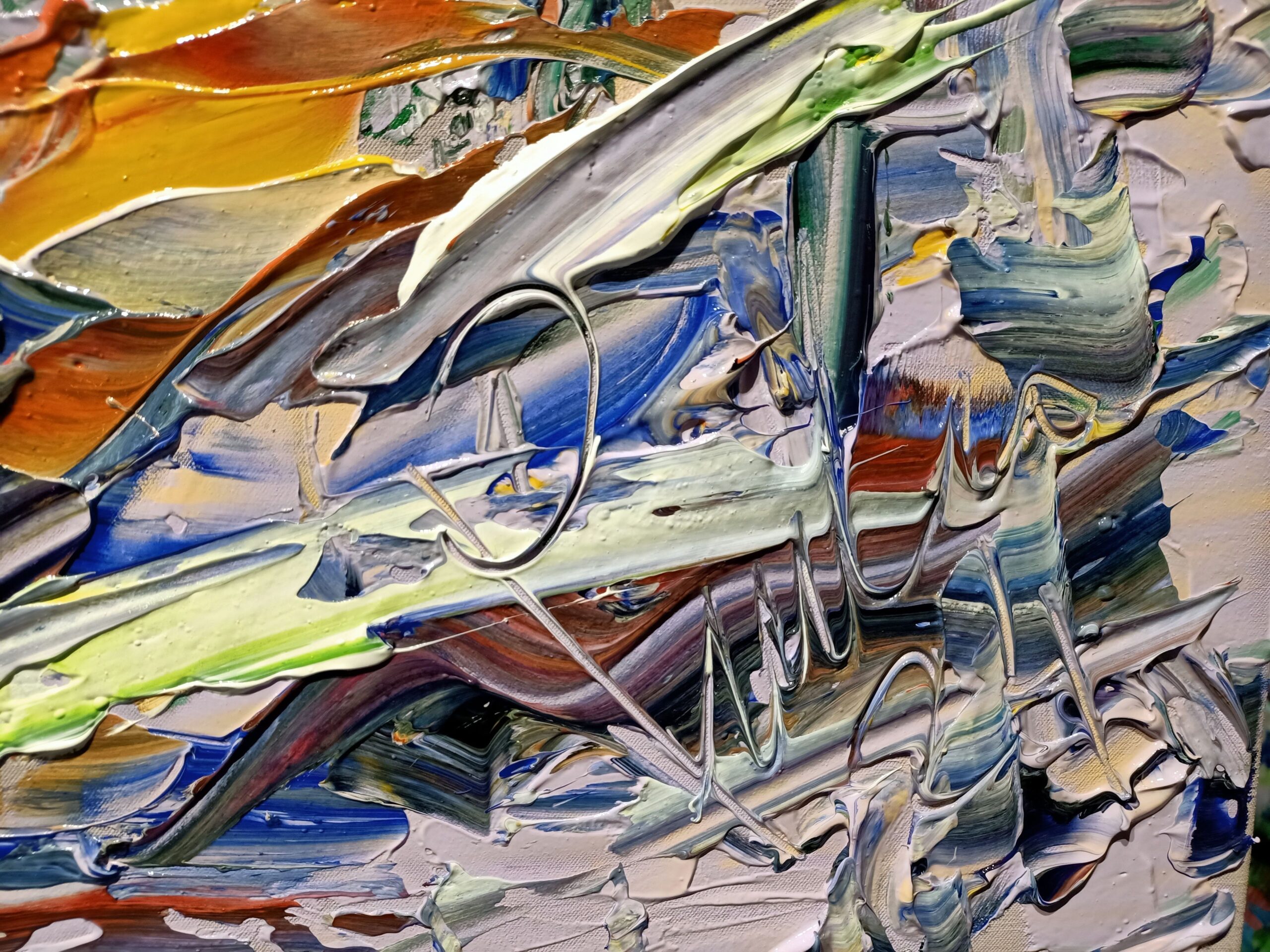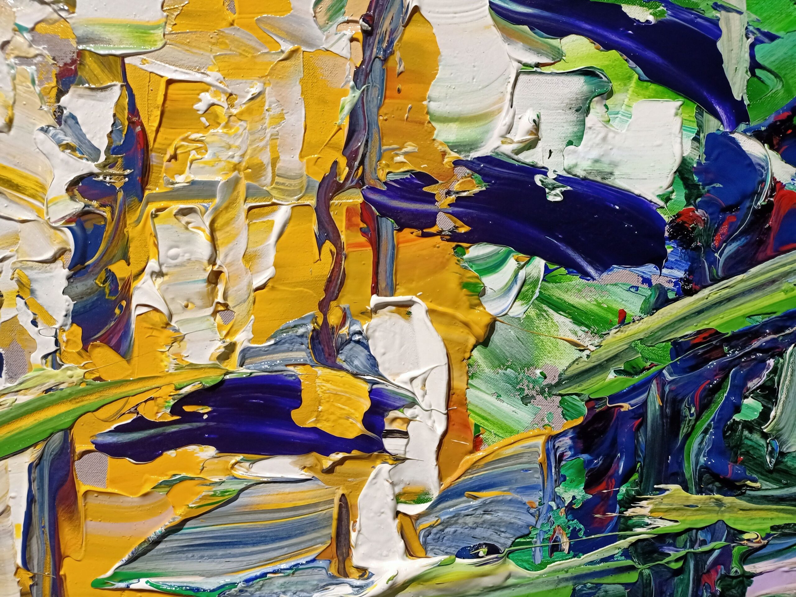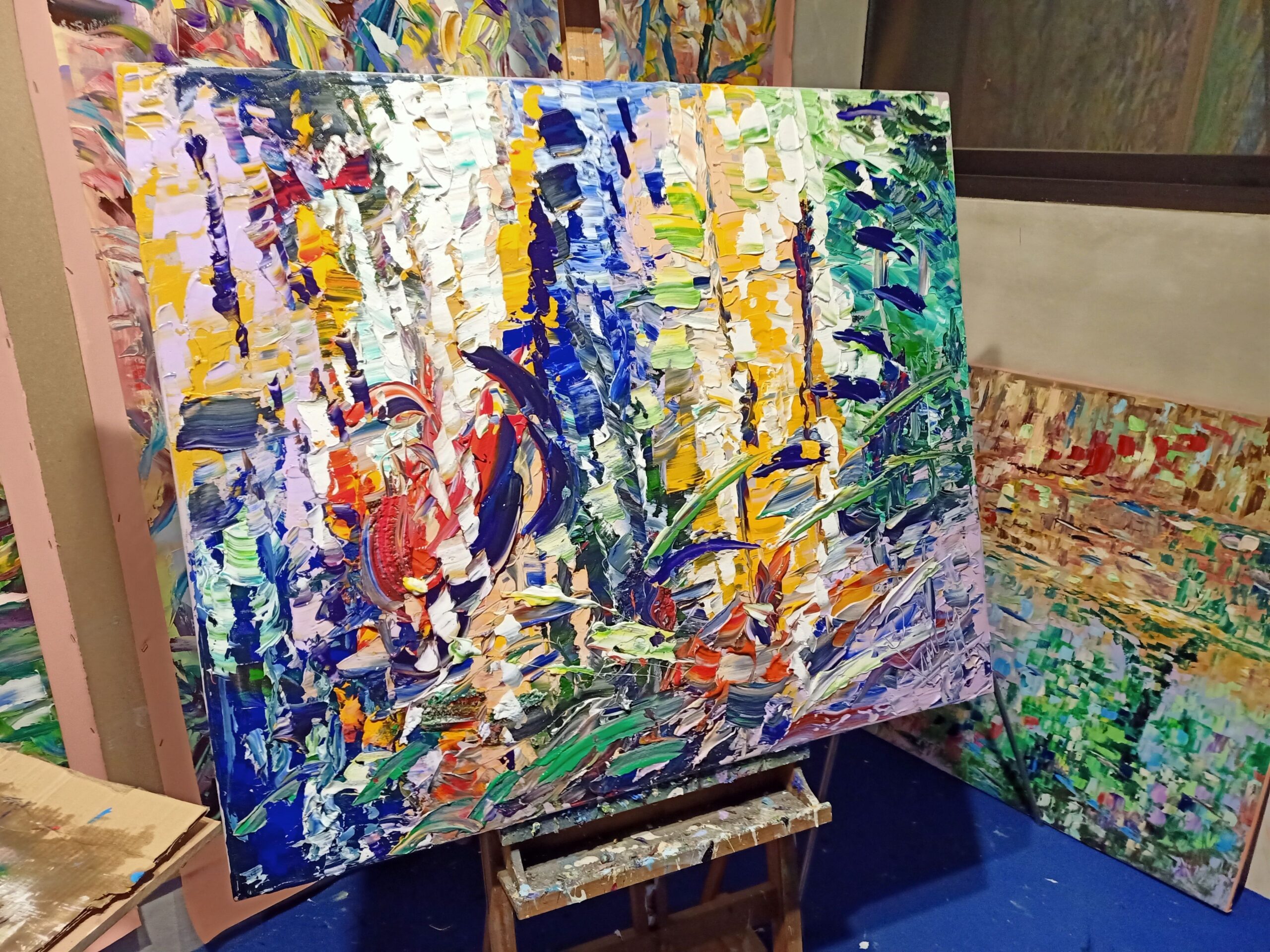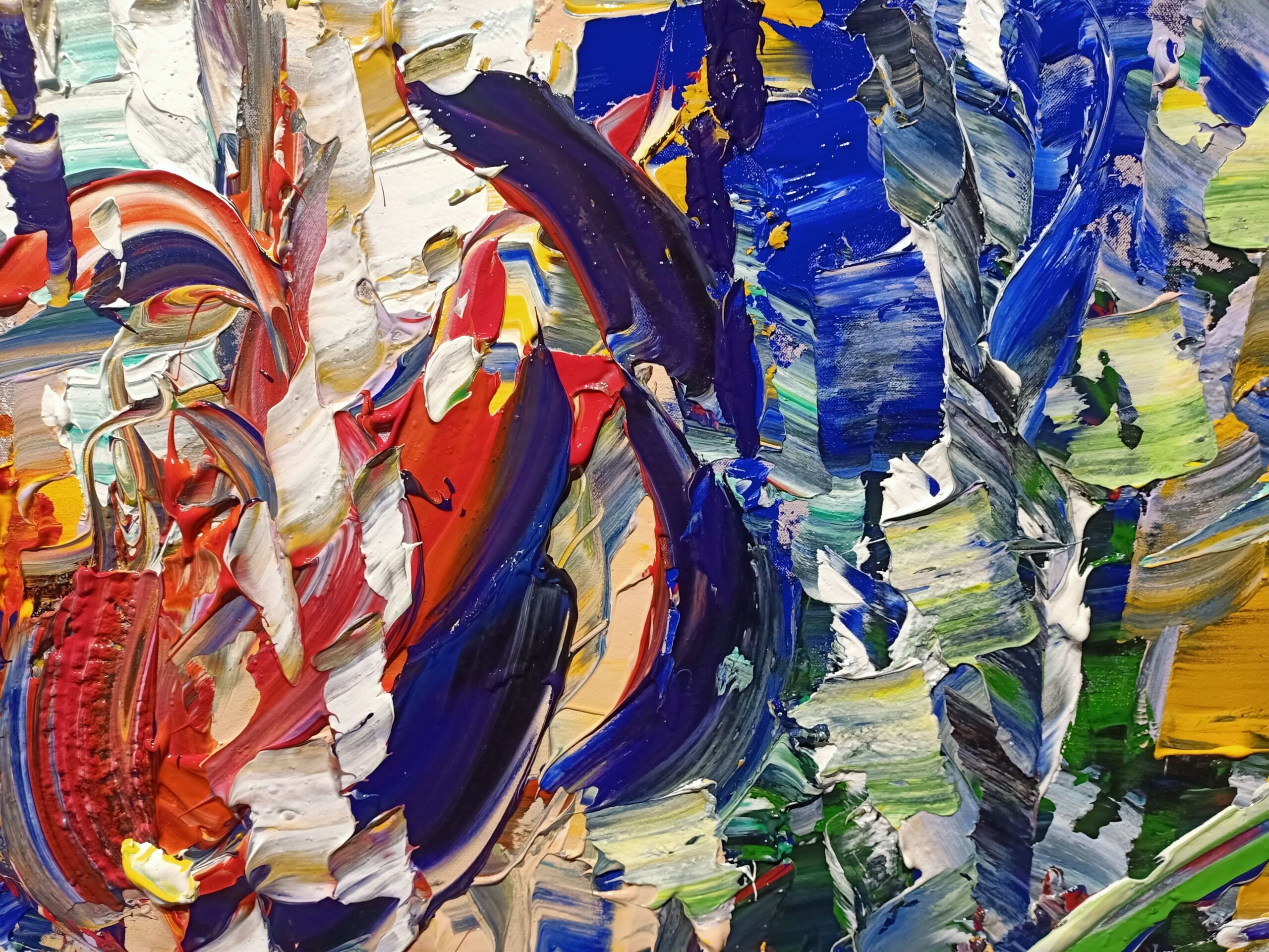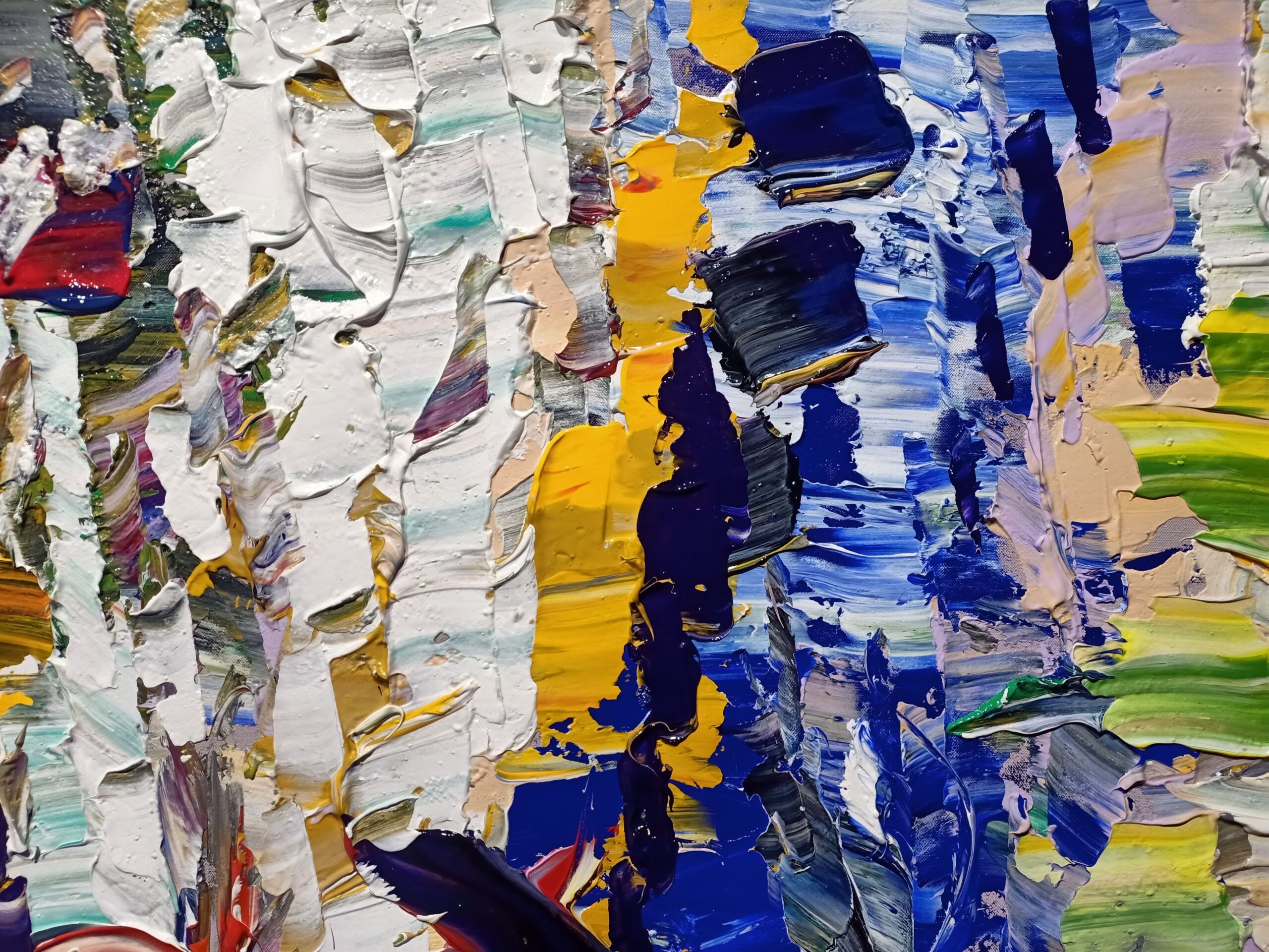 Immerse yourself in the dynamic universe of ‘Reflections in Port’, an abstract masterpiece that captures the vibrant essence of a lively harbour scene. This exceptional acrylic work on canvas is an explosion of brilliant colours and rich textures that take the viewer on a visual journey through movement and light.