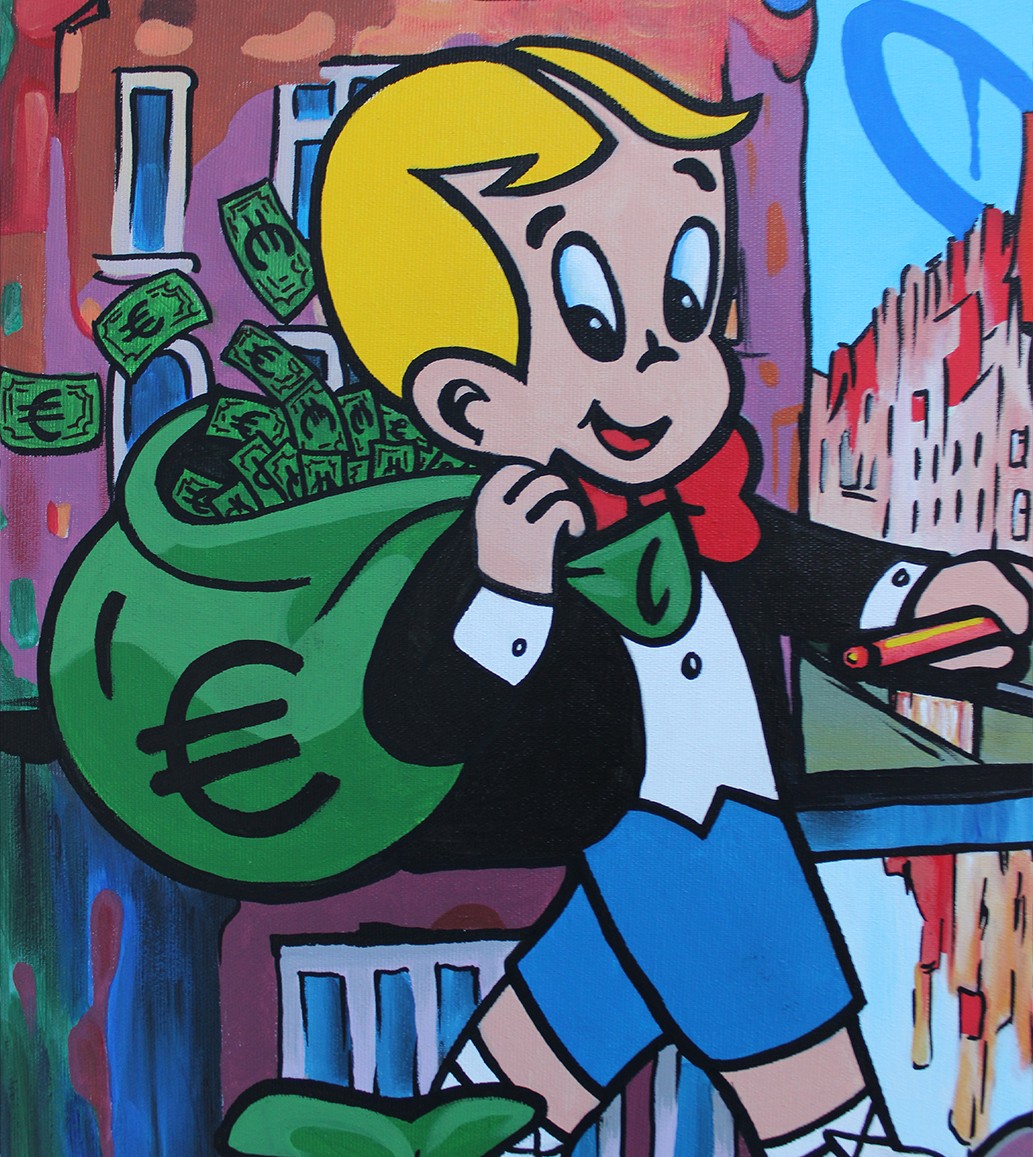 The artwork(Success is Stressful – Mr. Monopoly & Richie Rich in Bruges by Belart Collective) is available for pickup at BelArt Gallery in Brussels, Belgium, or it can be delivered to the address of your choice within 2 to 3 weeks after your order is confirmed. The artwork is insured during transportation, so there’s no risk. Origin: Belgium.