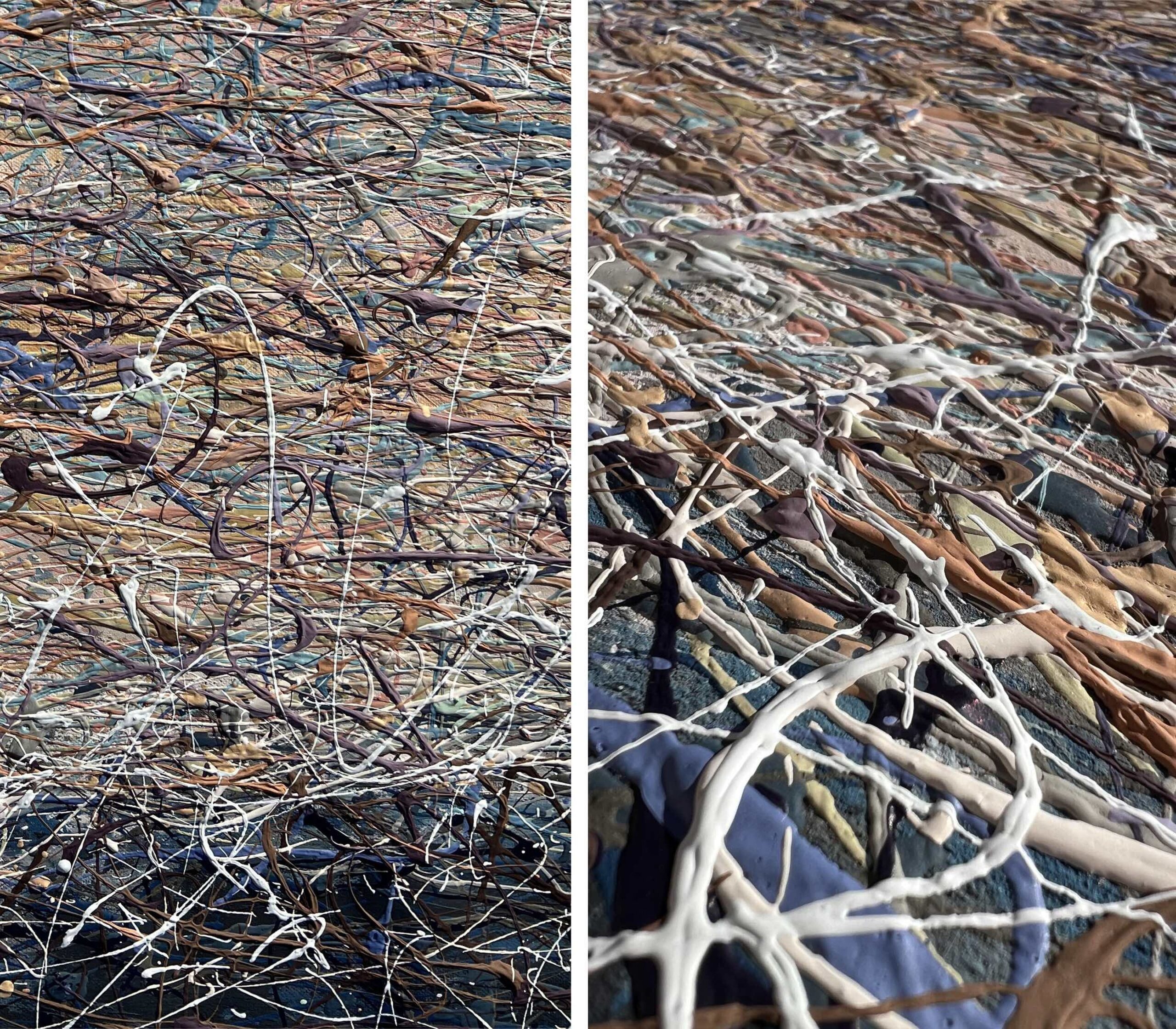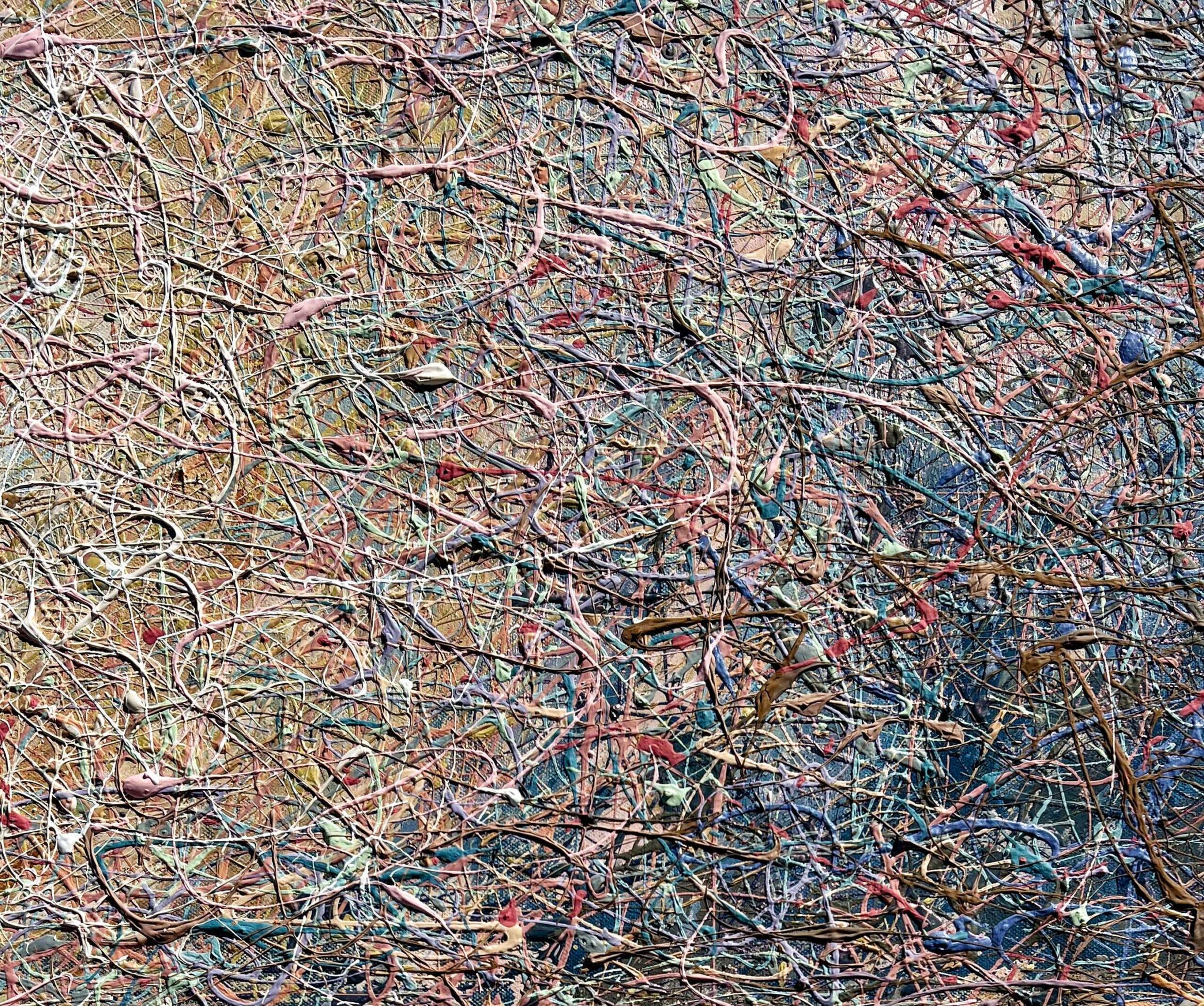 Painting is made using multi-layer paint technique. A million multi-colored splashes dry before each subsequent coat.