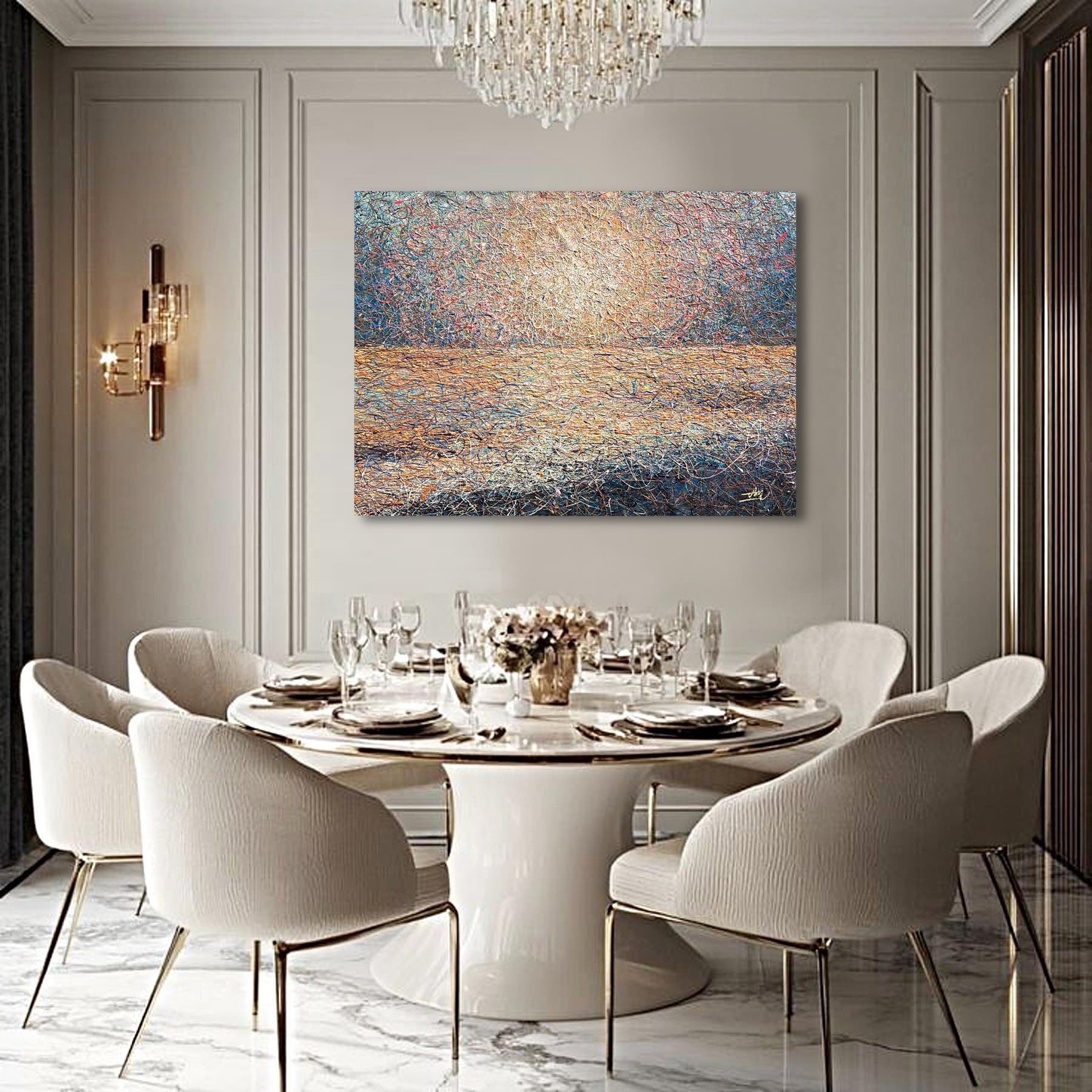The artwork(Sunlit Atmosphere by Nadin Antoniuk) is available for pickup at BelArt Gallery in Brussels, Belgium, or it can be delivered to the address of your choice within 2 to 3 weeks after your order is confirmed. The artwork is insured during transportation, so there’s no risk. Origin: Belgium.