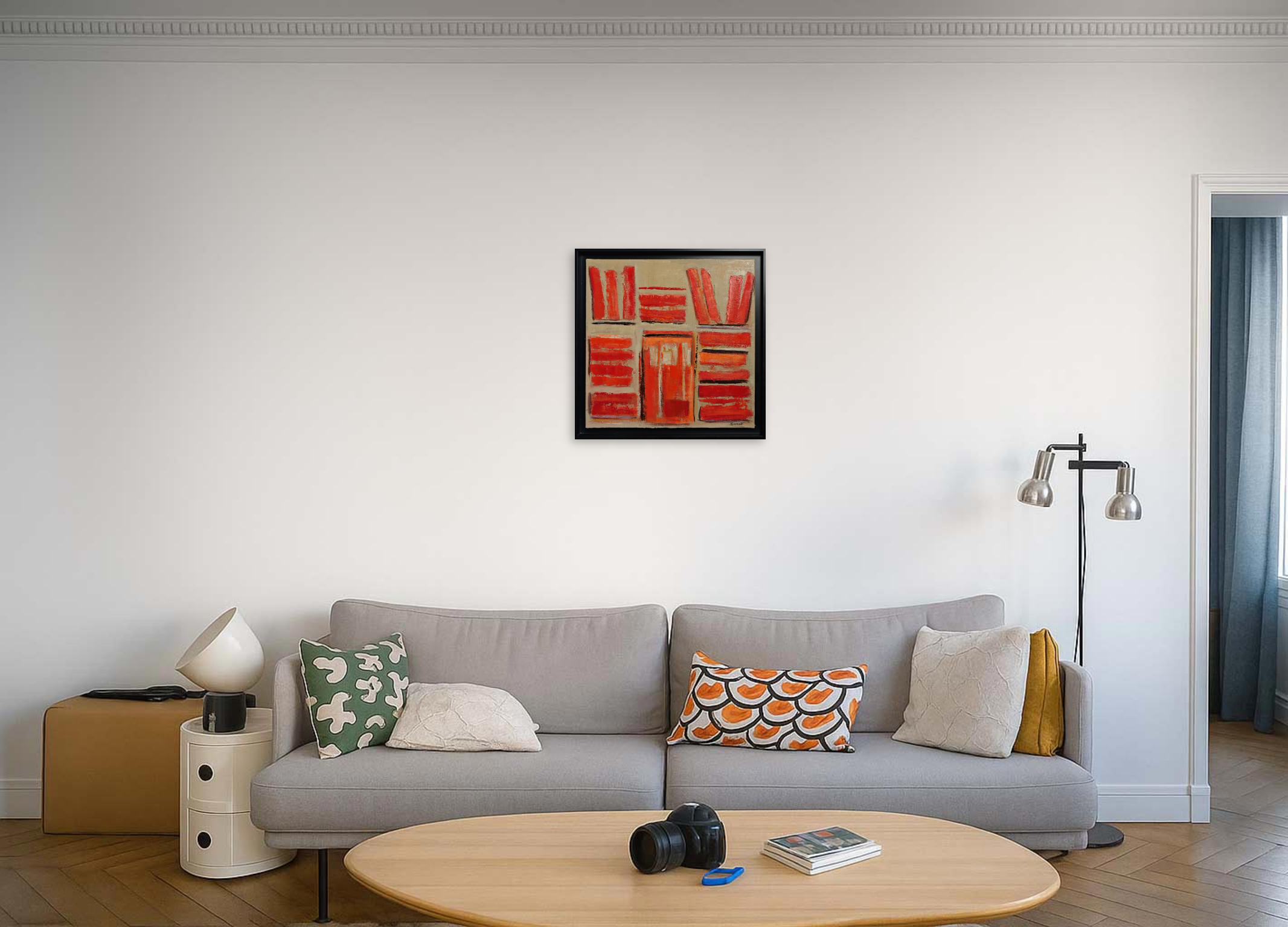The artwork (Terres ardentes by Sophie Dumont) is available for pickup at BelArt Gallery in Brussels, Belgium, or it can be delivered to the address of your choice within 2 to 3 weeks after your order is confirmed. The artwork is insured during transportation, so there’s no risk. Origin: Belgium.