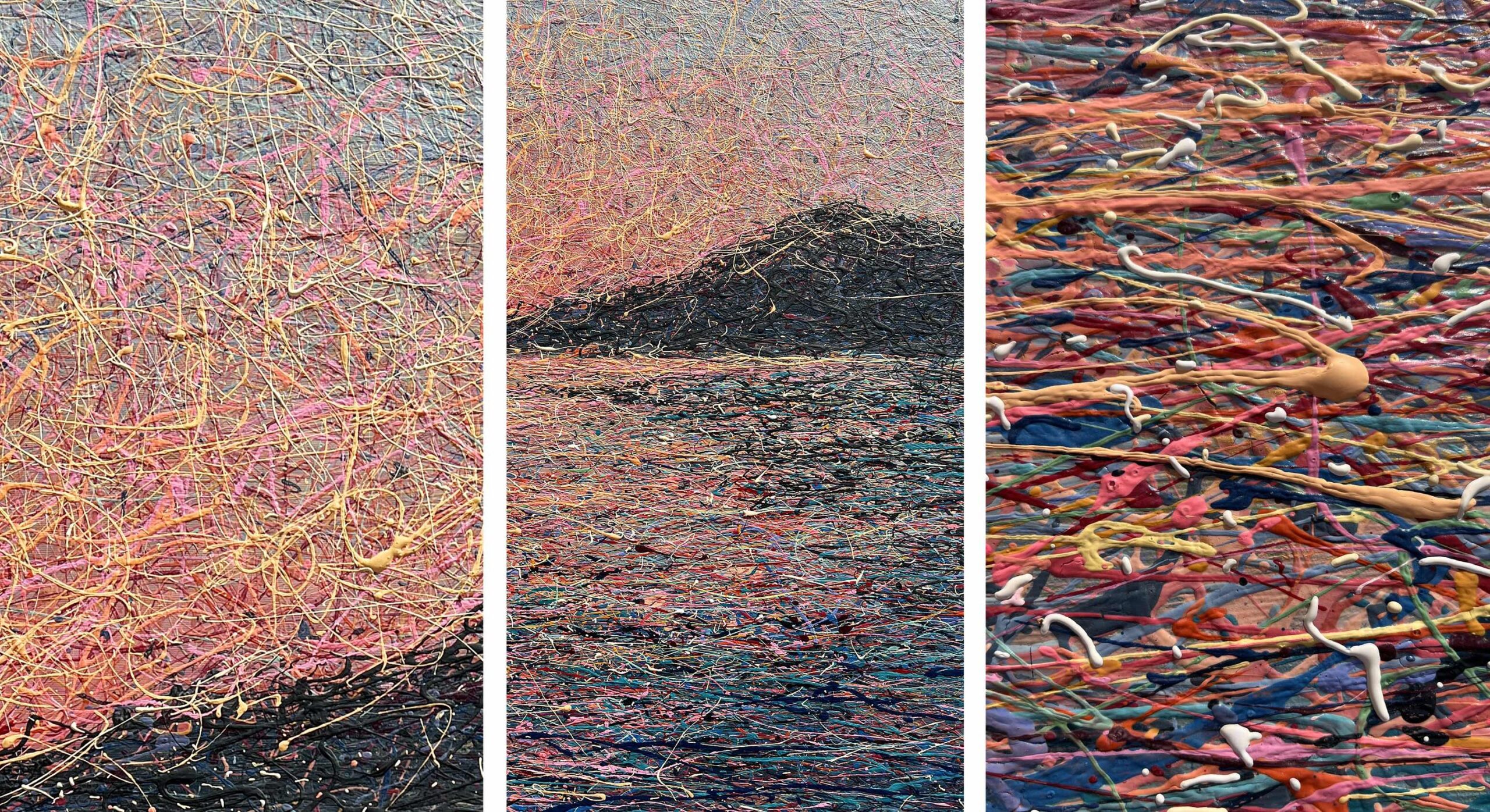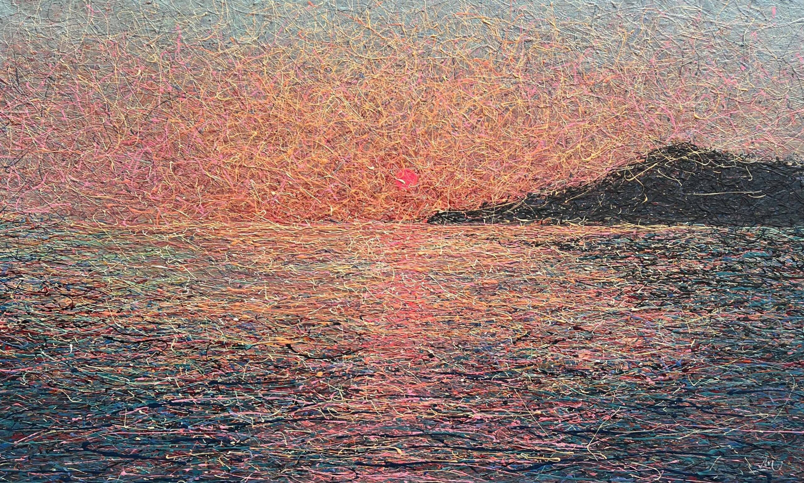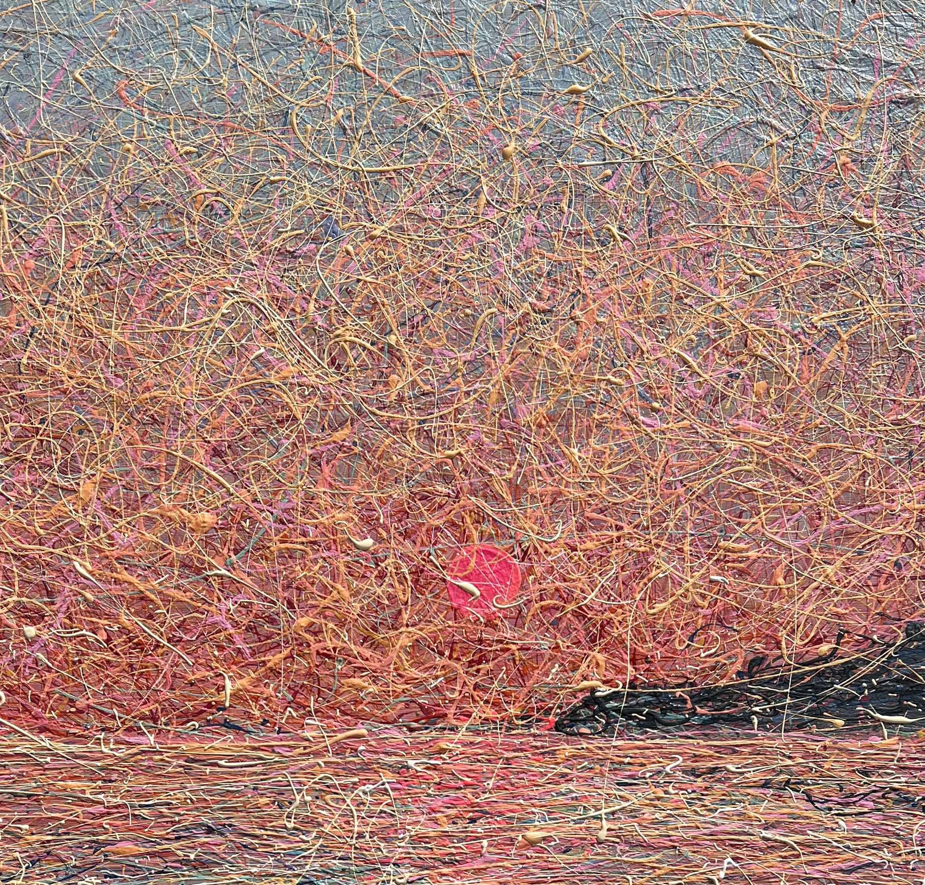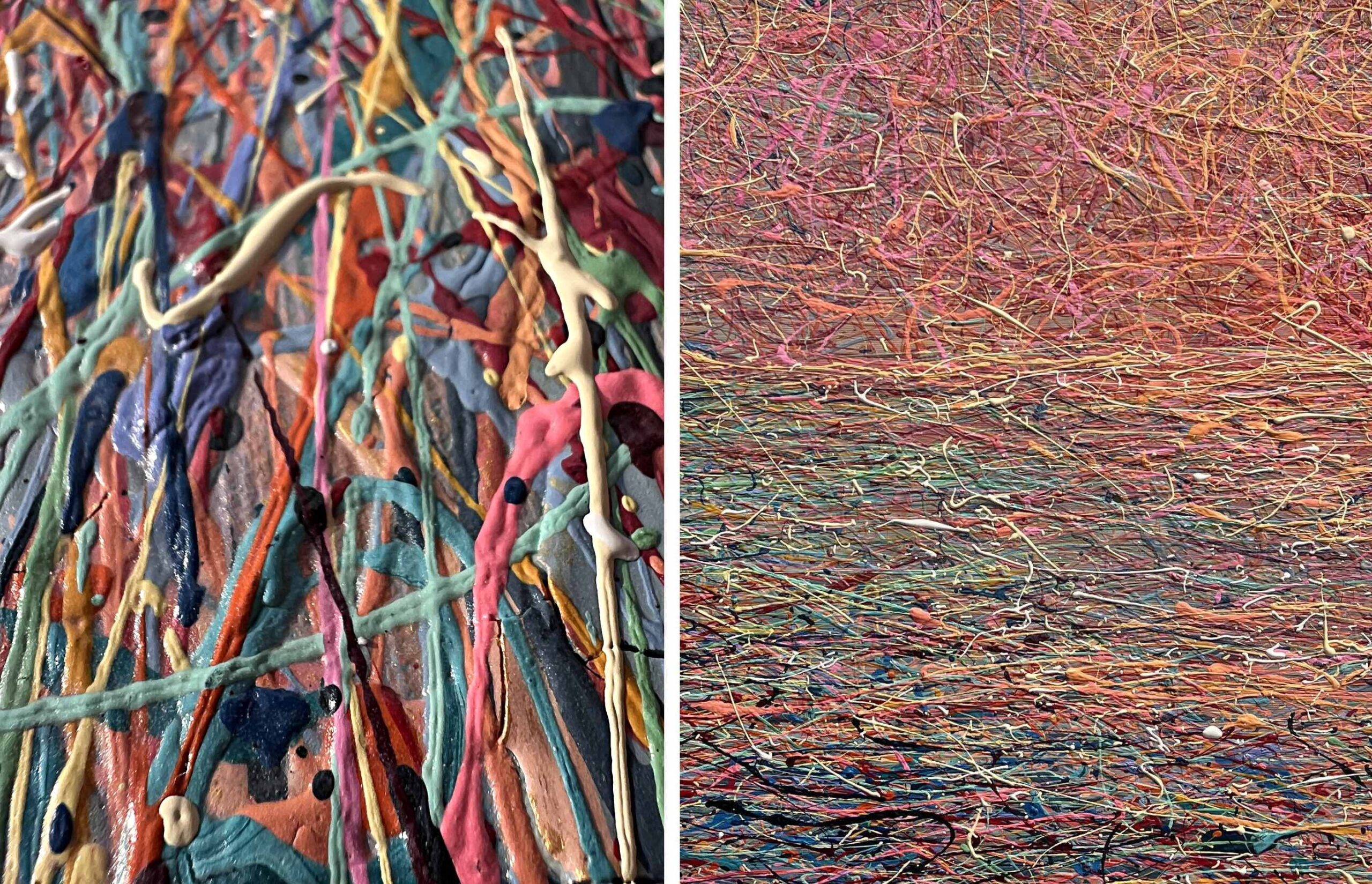 Painting style – the paint is applied in threads. The threads of paint seem to intertwine, creating their own canvas. Painting is made using multi-layer paint technique. A million multi-colored splashes dry before each subsequent coat of a colored the threads of paint is applied. In general, the painting has more then 50 layers of the application of colourful splashes.