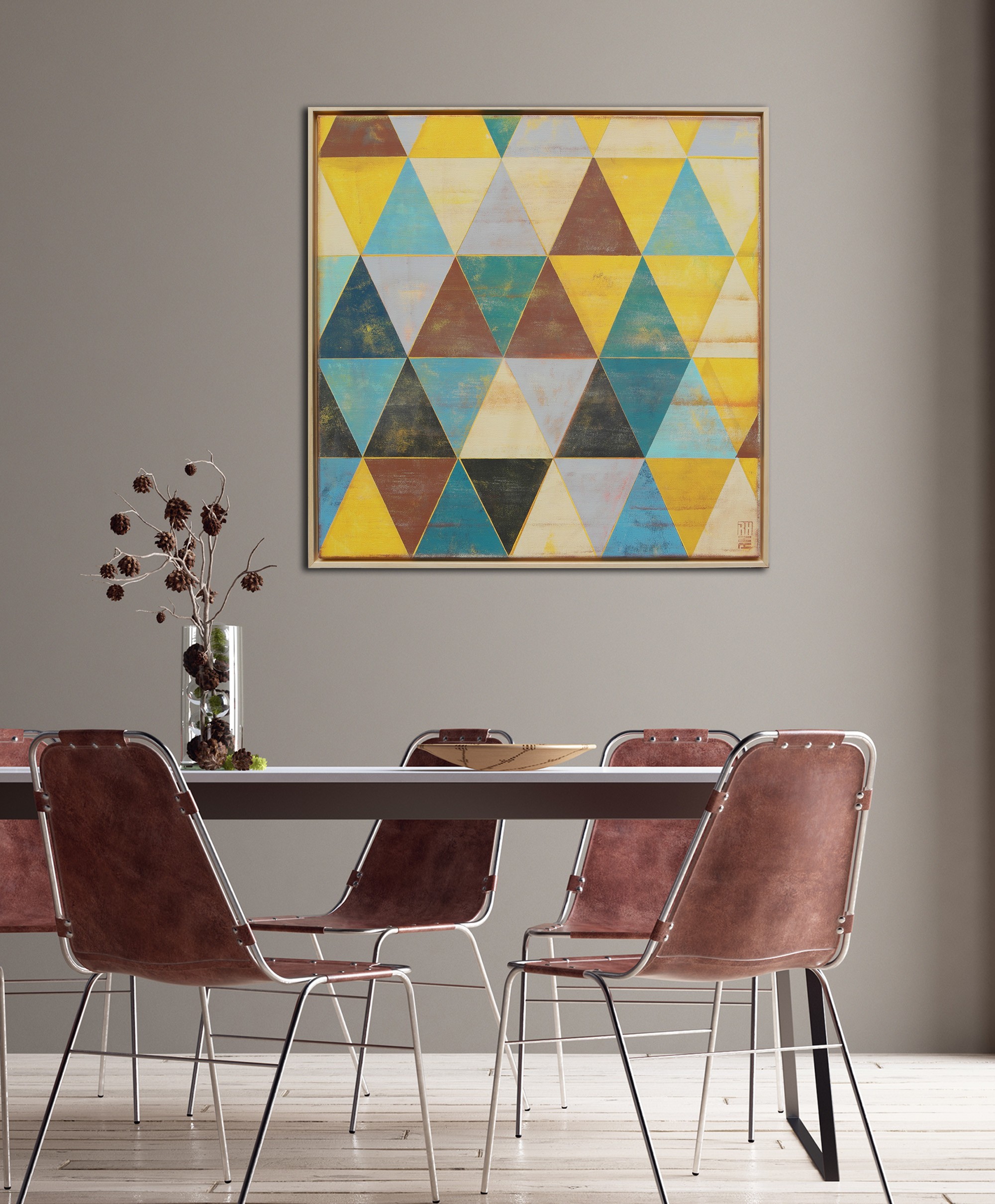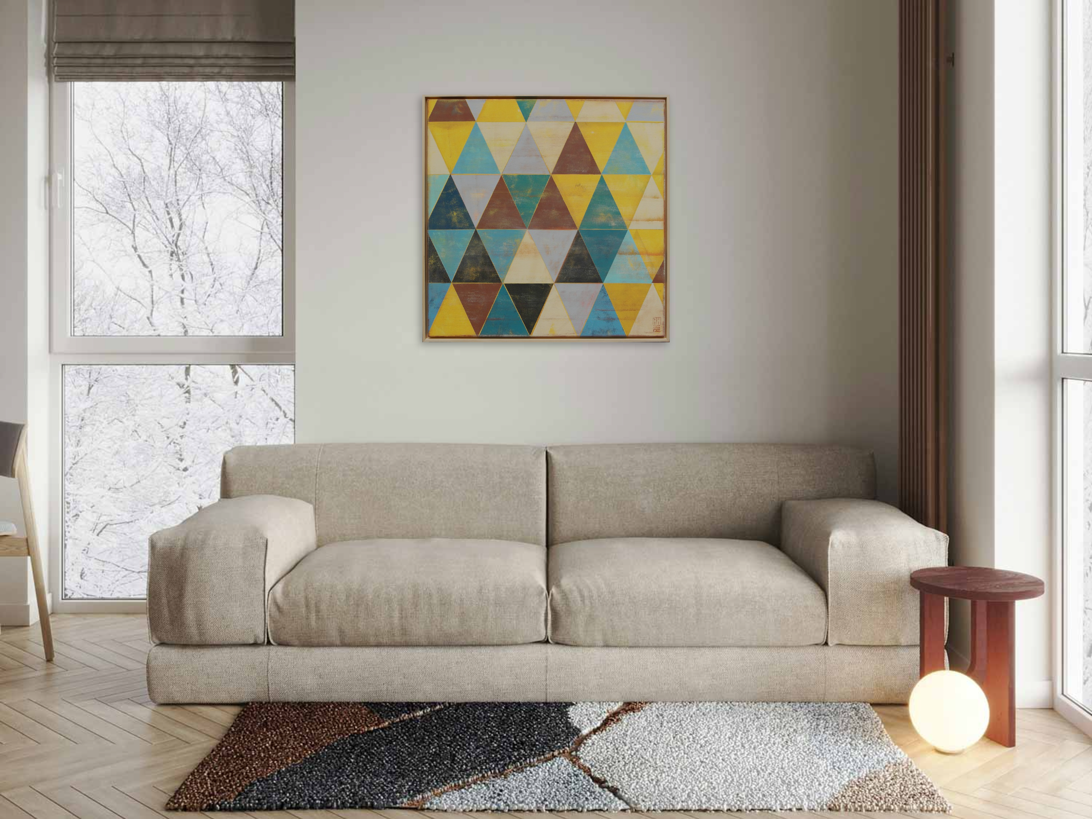 This artwork (Triangle Traffic Natural – incl Frame by Ronald Hunter)is available for pickup at BelArt Gallery in Brussels, Belgium, or it can be delivered to the address of your choice within 2 to 3 weeks after your order is confirmed. The artwork is insured during transportation, so there’s no risk. Origin: Belgium.